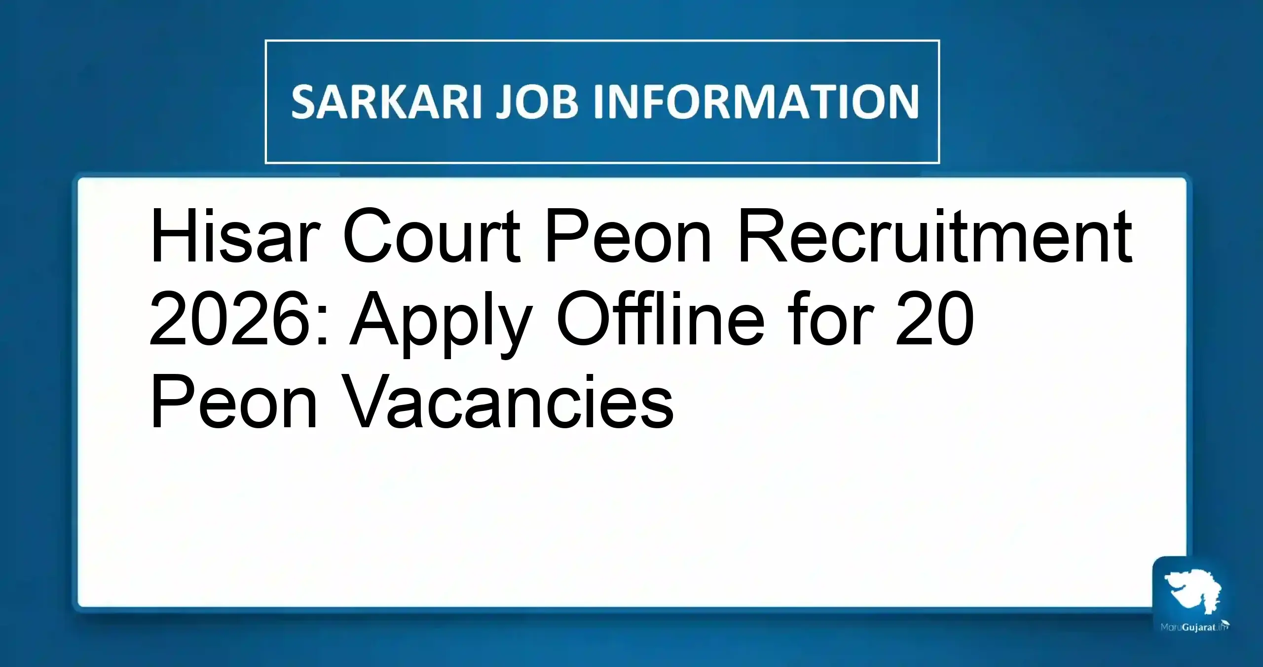 • Hisar Court Peon Recruitment 2026: Apply Offline for 20 Peon Vacancies